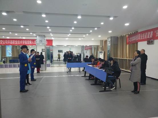 为进一步深化高等职业教育教学改革,切实加强技能型人才培养,1月2日下午,经过大赛组委会及系全体工作人员的精心筹备和辛勤努力,www.365466.com2017-2018学年校级职业技能大赛航空类项目在航空服务技术&创新中心举行。本次大赛航空工程系共承办了民航乘务技能、航空机载设备安装调试与维修、惟楚杯?高铁乘务英语服务技能三个项目的比赛。副院长郭长庚、教务处负责人杨富营一行到决赛现场巡视指导决赛工作,航空工程系主任张俊才、党总支书记李娜陪同。