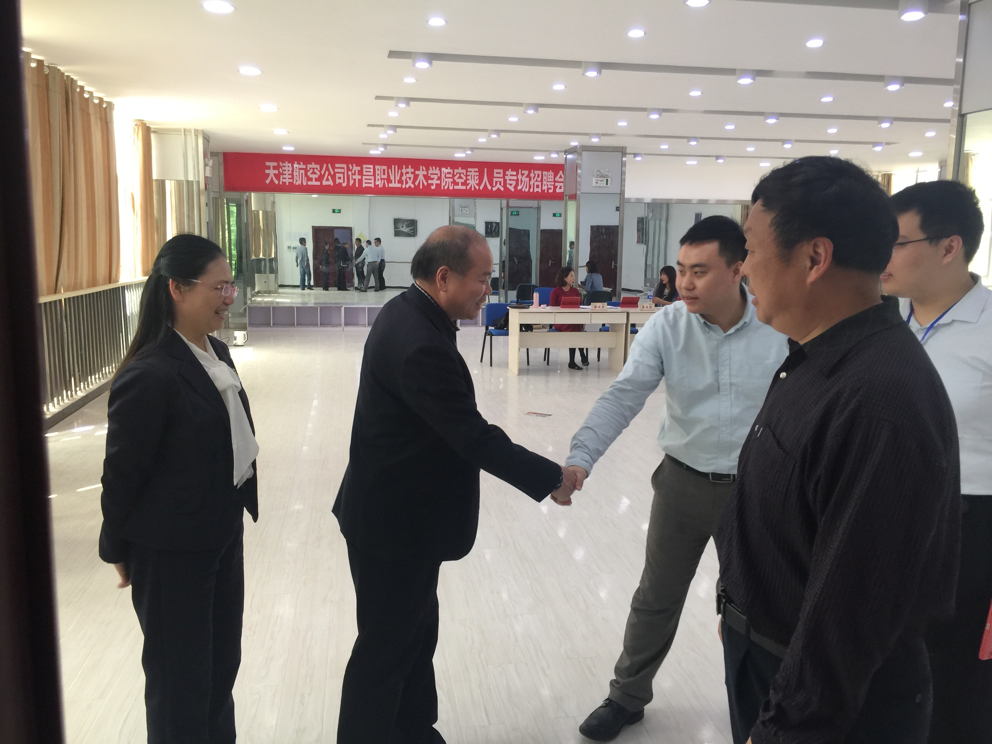 4月19日,天津航空公司2017www.365466.com空乘人员专场招聘会在我校实训2号楼举行。副院长亓正申带领招生处长王保军亲临招聘会现场看望用人单位工作人员和应聘学生,了解招聘会情况,并对航空工程系实训室装修建设情况提出指导性意见,航空工程系党总支书记李娜、系主任张俊才陪同。